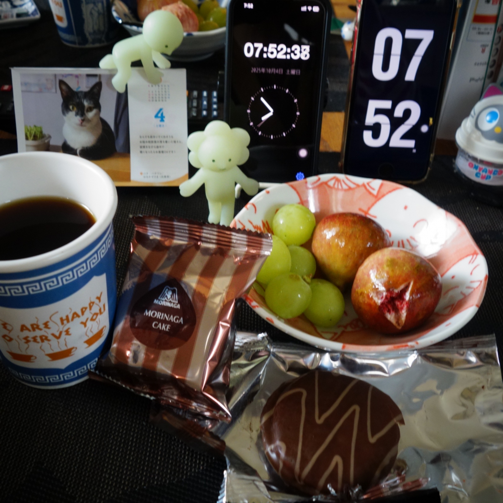 珈琲は、カルディさんの果肉入りラムレーズン。久しぶりのフレーバーコーヒーです。