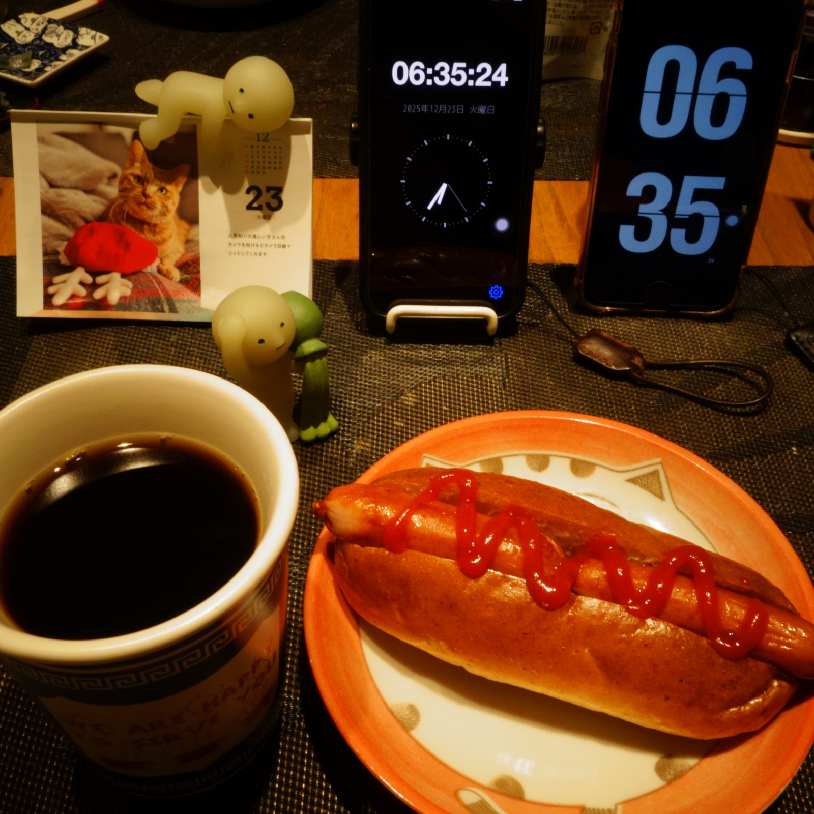 ソーセージを2本炙って挟んでます。